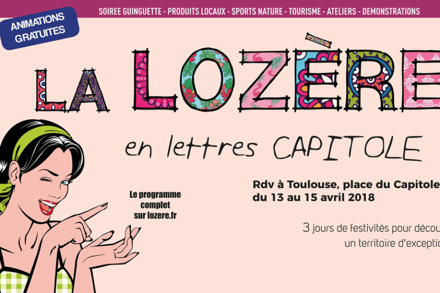 Retrouvez nous du 13 au 15 avril 2018 à Toulouse place du Capitole ! Manifestation de promotions de la Lozère sur 3 jours de festivités pour découvrir un territoire d’exception ! « Un village » réunissant une cinquantaine d’exposants (dont Cévennes Evasion) et de producteurs locaux, des animations gratuites, des dégustations, un concert…