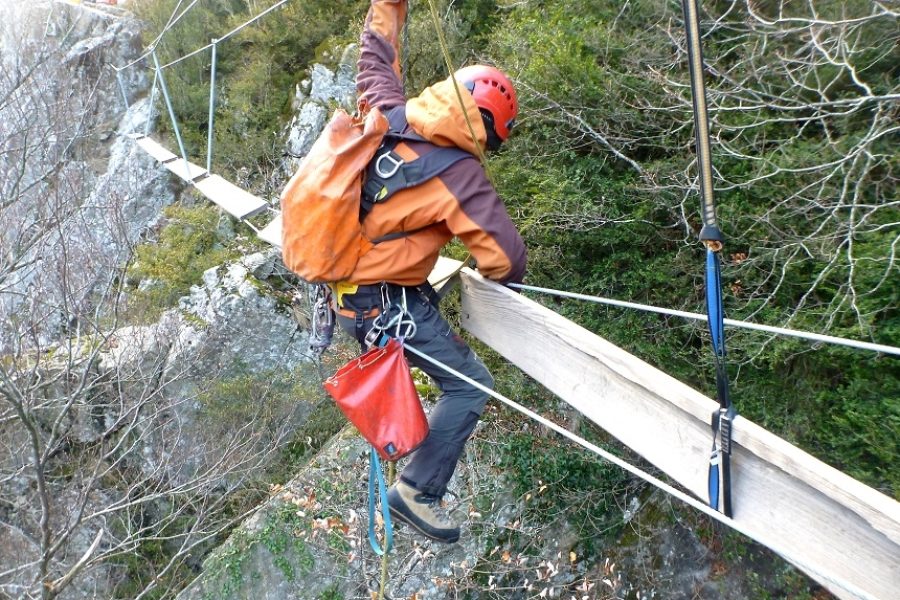 A la demande de la mairie de Rousses, des travaux d’entretien ont été réalisés en décembre par l’équipe de Cévennes Evasion sur la via ferrata de Rousses. Remplacement de certaines planches de la passerelle, nouveau câble… Une nouvelle vie pour la via !